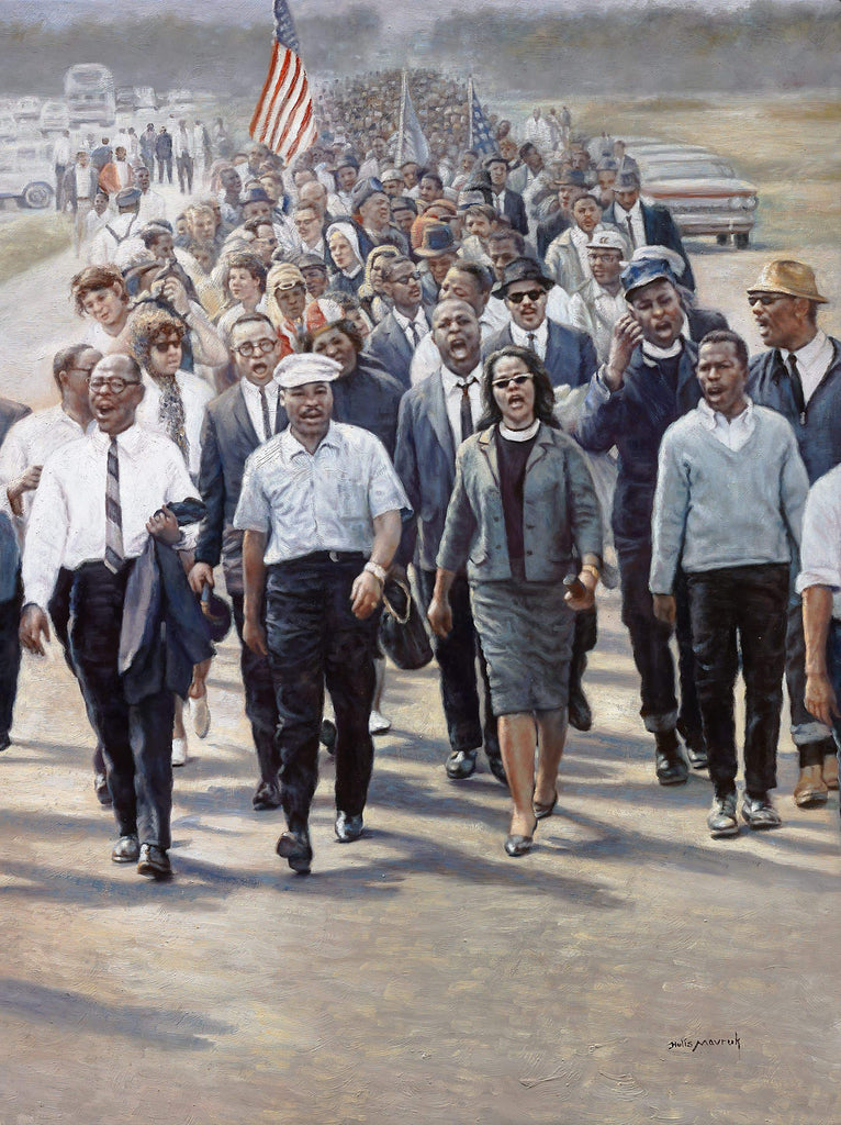 March to Freedom: The emotional painting of the Selma March, a key moment in the civil rights movement led by Martin Luther King Jr.